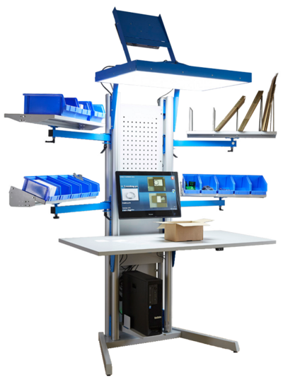 Wir sorgen mit einem höhenverstellbaren Werktisch für die Ergonomie. Die Kombination aus intelligenter Software und ergonomischem Arbeitsplatz, entlastet die Mitarbeiter in jeder Hinsicht. Das Assistenzsystem wird entlang der gesamten Wertschöpfungskette eingesetzt: Von Wareneingang über Montage bis hin zum Warenausgang. Die Möglichkeiten gehen von einer reinen Identifikation bis hin zu einer voll ausgestatteten Wareneingangsprüfung mit lieferantenbezogener Stichprobenauswahl. Je nach Anforderungen des Kunden werden diese Module zu einem System zusammengeführt.